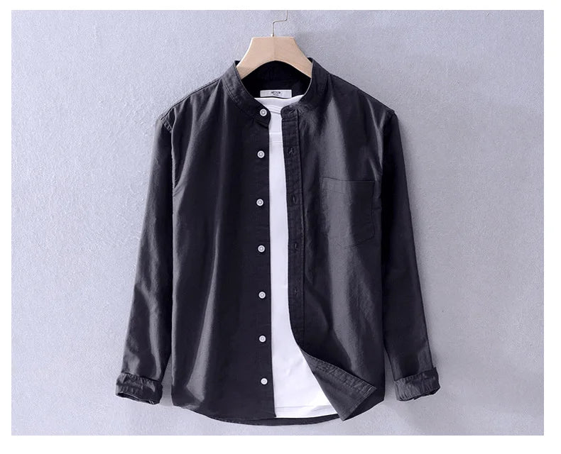Men’s cotton Oxford shirt, stand collar, casual, comfortable white